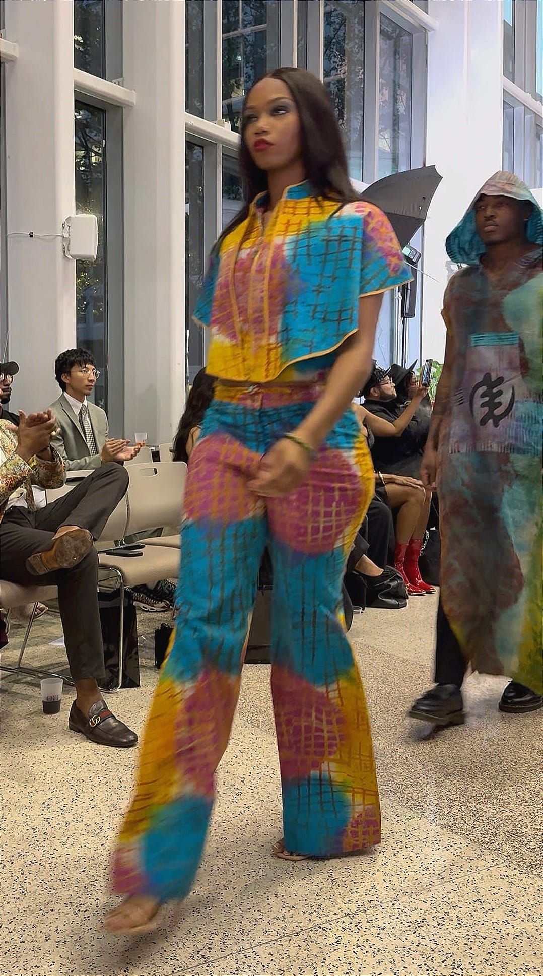 The space itself was clean, with comfortable seating, but could have benefited from better staging. Chairs pressed too closely together disrupted both comfort and presentation. White benches, paired with lightweight walls surrounding the runway, could have transformed the space into a minimalist stage set—allowing garments, not architecture, to dominate.
