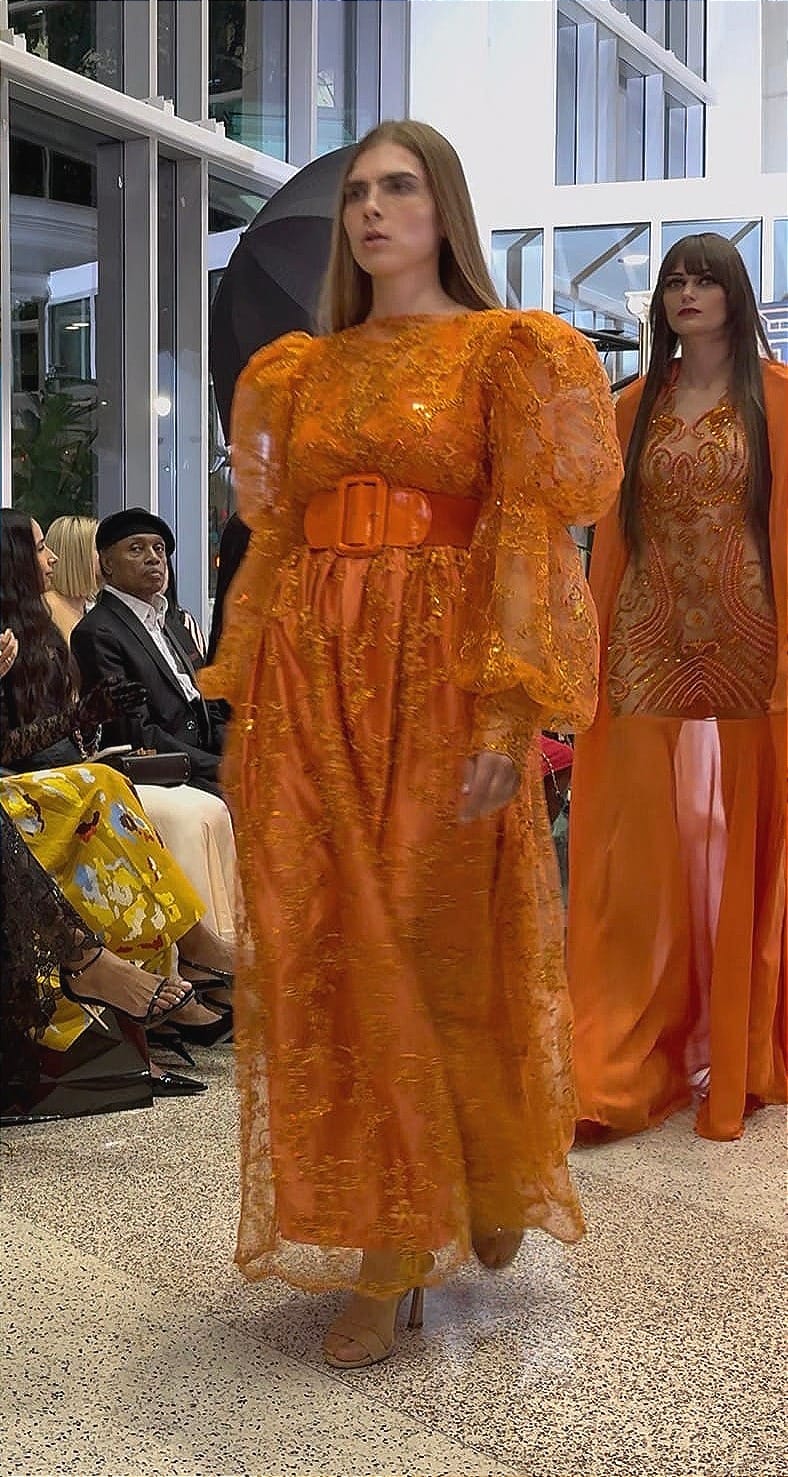 The evening began with ushers guiding guests to their tables, offering wristbands printed with the date in bold orange letters on black. While efficient, the arrival lacked the kind of curated introduction that sets the tone for an evening of couture. Guests should not simply be seated; they should be guided—accompanied with intention. A pre-show introduction or escort to tables would elevate the sense of exclusivity.